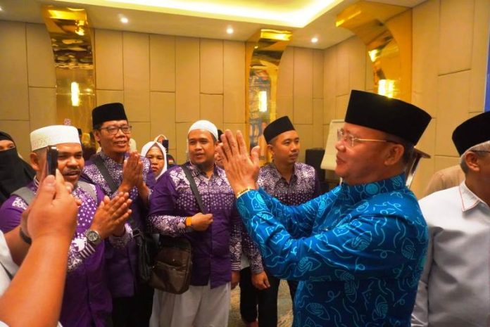 BENGKULU, CoverPublik.com » Gubernur Rohidin Mersyah secara resmi melepas 46 Calon Jamaah Haji (CJH) yang diberangkatkan dari PT Bahana Sukses Sejahterah (BSS) Travel Cabang Bengkulu di Hotel Two Azanah, Selasa (21/5).