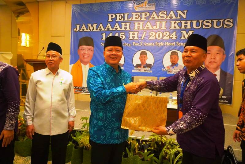 “Melepas haji khusus dari Bengkulu yang diberangkatkan dàri Bahana Sukses Sejahterah Travel tadi kami menyampaikan pesan agar mereka menjaga kekompakan para jamaah ini. Kemudian agar jamaah fokus menunaikan ibadah dengan sabar dan tentu kami mendoakan kita masyarakat Bengkulu agar CJH dapat menunaikan ibadah dengan sempurna,” kata gubernur lulusan terbaik UGM tersebut.