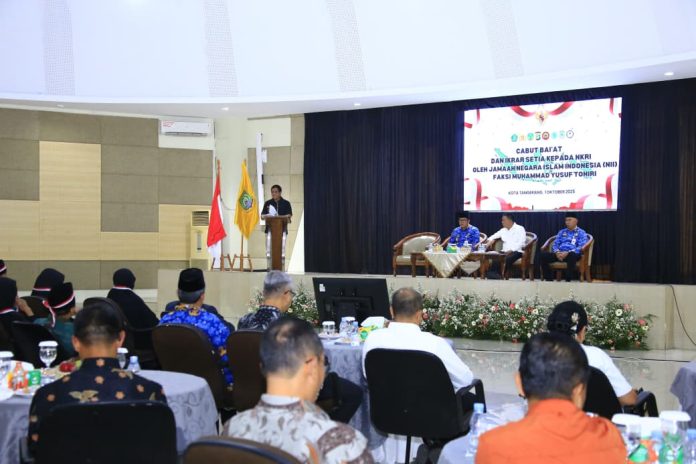 Tangerang, Coverpublik.com — Bertepatan dengan peringatan Hari Kesaktian Pancasila, sebanyak 58 orang jamaah eks anggota kelompok Negara Islam Indonesia (NII) faksi MYT (Muhamad Yusuf Tohiri) menyatakan ikrar setia kepada Negara Kesatuan Republik Indonesia (NKRI) dalam sebuah acara yang berlangsung khidmat di Kantor Majelis Ulama Indonesia (MUI) Kota Tangerang, pada Rabu, 1 Oktober 2025 pukul 09.00 WIB.