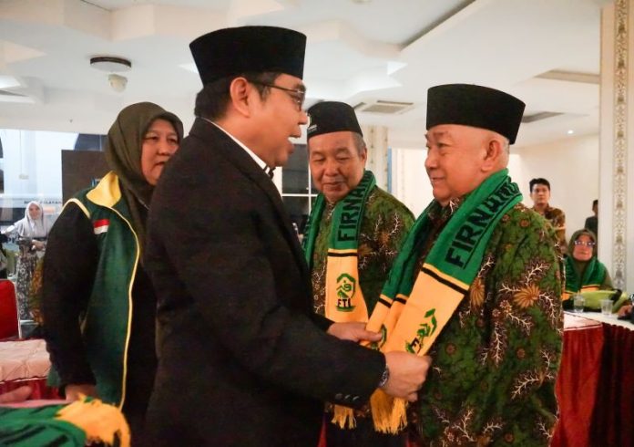 CoverPublik.com – Asisten I Setda Bengkulu Bidang Pemerintahan dan Kesejahteraan Rakyat, Khairil Anwar, melepas jemaah umrah PT. Firnando Team Indonesia di Asrama Haji Bengkulu, Senin (2/9/2024).