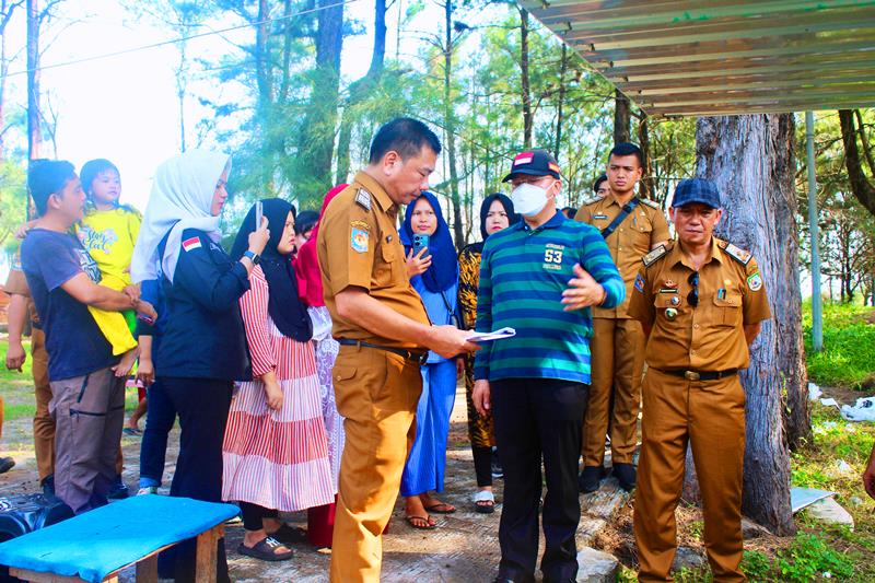 CoverPublik.com » Gubernur Rohidin Mersyah bersama Kadis Pariwisata Provinsi Bengkulu Murlin Hanizar dan didampingi OPD terkait meninjau langsung titik pembangunan awning zona 1 di Pantai Panjang.