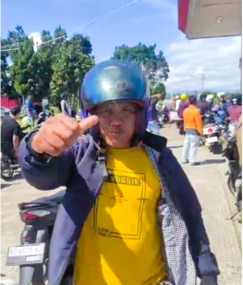 “Sudah empat hari motor saya tidak bisa dipakai karena kehabisan bensin. Ke SPBU antreannya luar biasa panjang. Di pom mini pun sama saja, antre panjang dan harganya mahal, Rp14.000 per liter. Tapi tetap kami beli karena kebetulan ada yang buka di sini,” ungkapnya.
