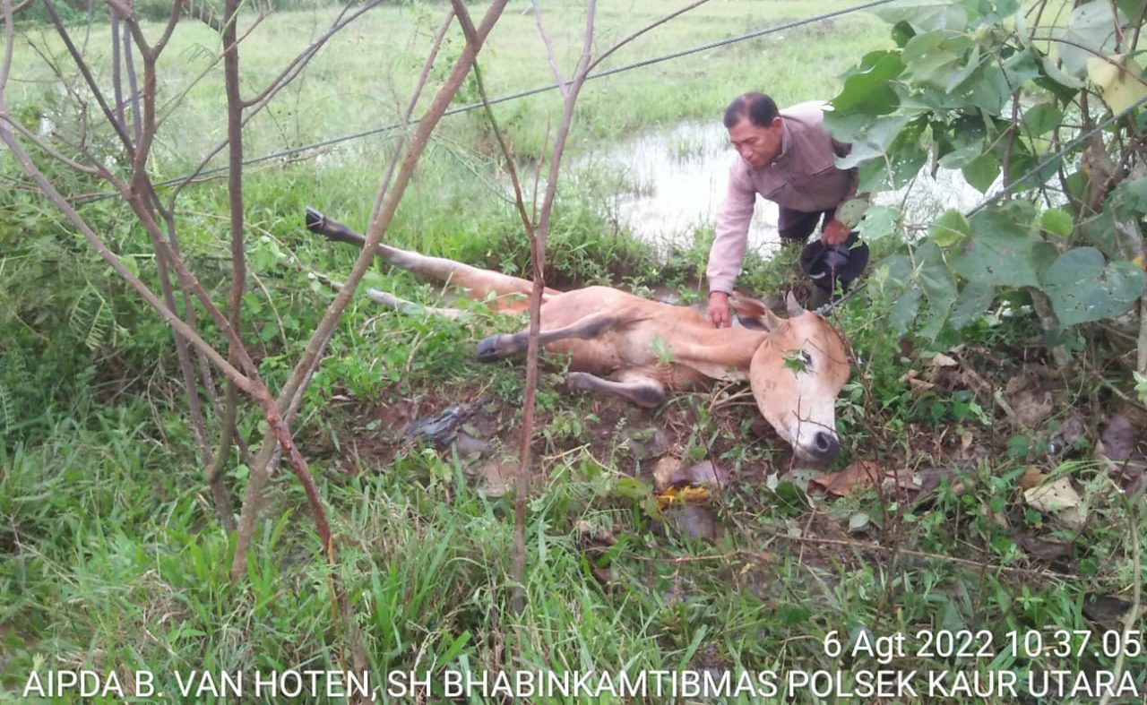Dalam kesempatan ini, Aipda B. Van Hoten SH, yang bertugas sebagai Anggota Bhabinkamtibmas Polsek Kaur Utara Polres Kaur ini mengingatkan warga untuk segera melapor secara berjenjang hingga dinas terkait apabila menemukan gejala PMK.