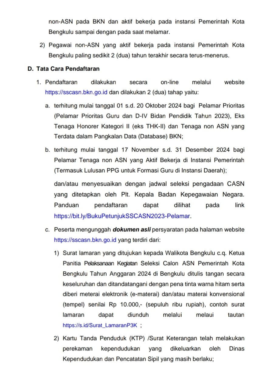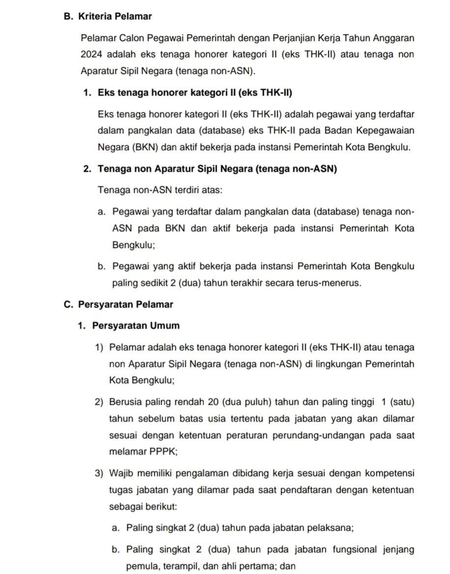 CoverPublik.com – Kabar gembira!Pemerintah Kota (Pemkot) Bengkulu kembali membuka seleksi penerimaan Pegawai Pemerintah dengan Perjanjian Kerja (PPPK) tahun 2024.