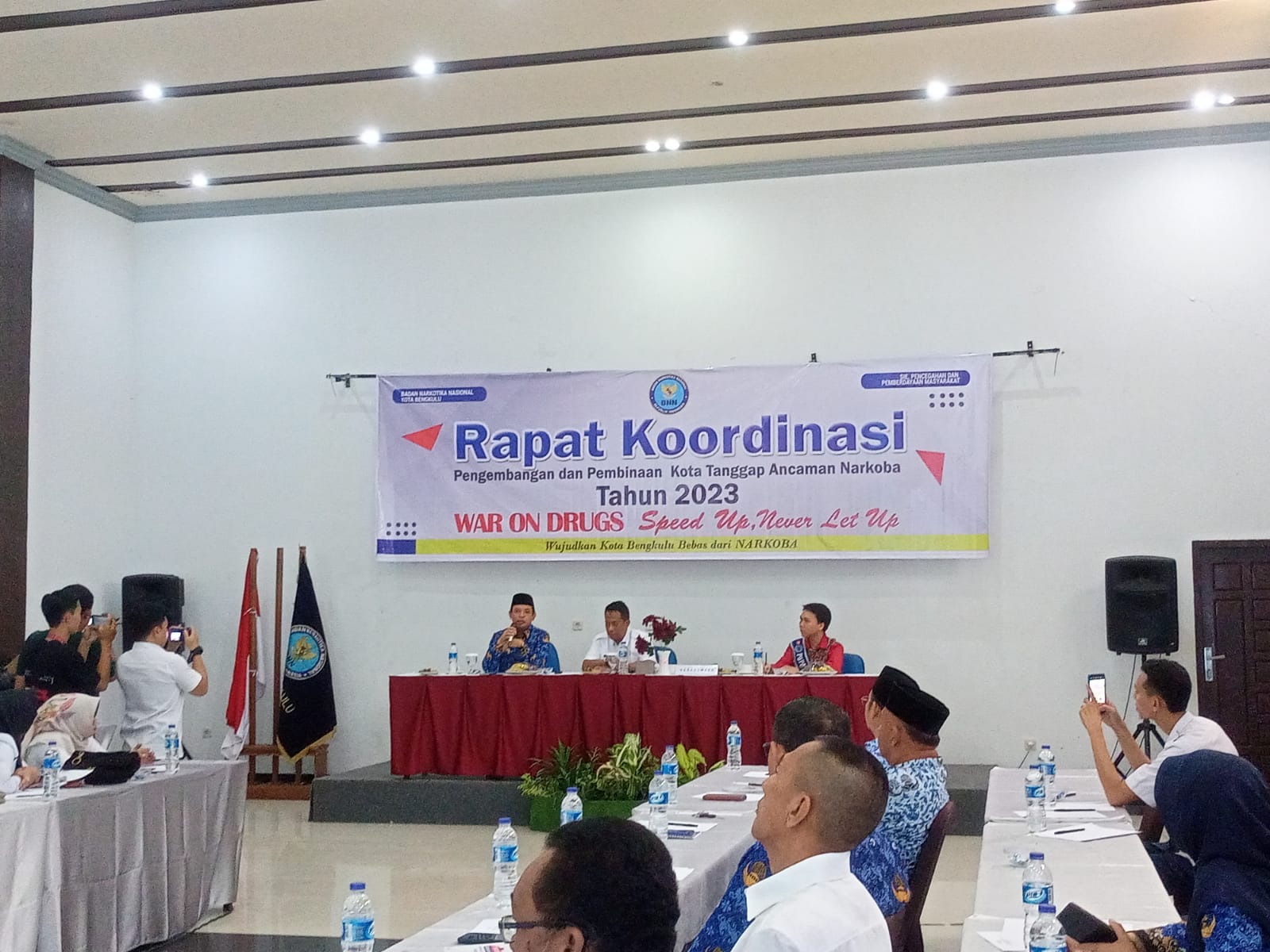 Hal tersebut disampaikan Kepala BNN Kota Bengkulu, Heru, saat menghadiri Rapat Koordinasi Ancaman Narkoba pada tahun 2023 dengan tema ” Wujudkan Kota Bengkulu Bebas Dari Narkoba” di Hotel Adeeva Kota Bengkulu. Rabu siang (17/05/2023).