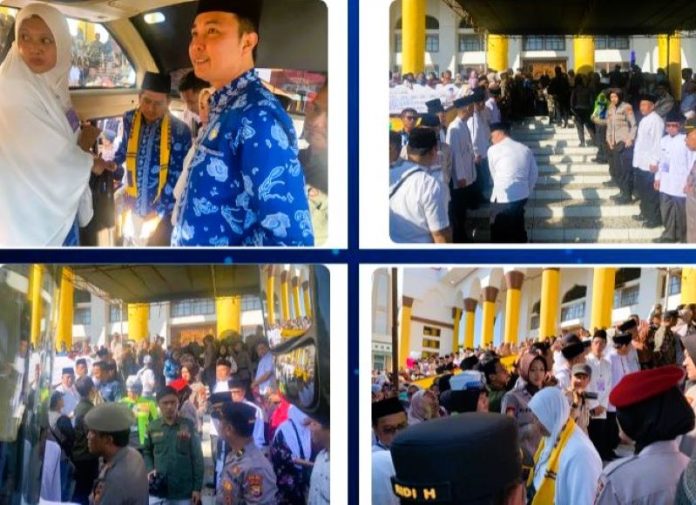 Rejang Lebong, CoverPublik.com – Sebanyak 228 jamaah calon haji (JCH) asal Kabupaten Rejang Lebong resmi dilepas keberangkatannya dalam kegiatan yang dilaksanakan pada Rabu, 7 Mei 2025, sekitar pukul 07.30 WIB di Masjid Agung Baitul Makmur, Kelurahan Air Putih Lama, Kecamatan Curup. Suasana haru dan khidmat menyelimuti prosesi pelepasan ini yang turut dihadiri oleh jajaran pemerintah daerah dan instansi terkait.