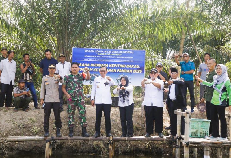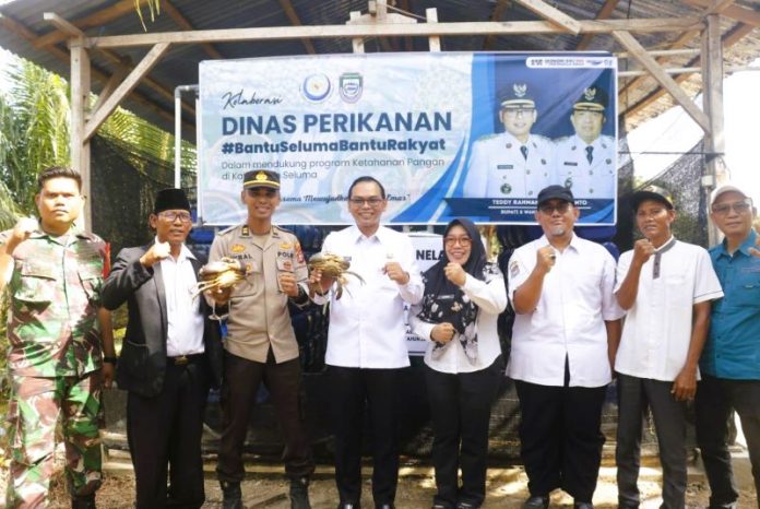 Seluma, CoverPublik.com – Dalam upaya memperkuat ketahanan pangan daerah, Bupati Seluma Teddy Rahman, SE, MM secara resmi meluncurkan Program Ketahanan Pangan Budidaya Kepiting Bakau. Kegiatan peresmian ini berlangsung pada Kamis (12/6/2025) di halaman Kantor Desa Kungkai Baru, Kecamatan Air Periukan.