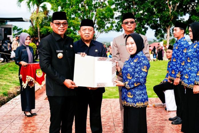 Bupati Tedy Rahman Saat Menyerahkan SK kepada para CPNS. Rabu (11/6/2025). Foto: Humas Seluma