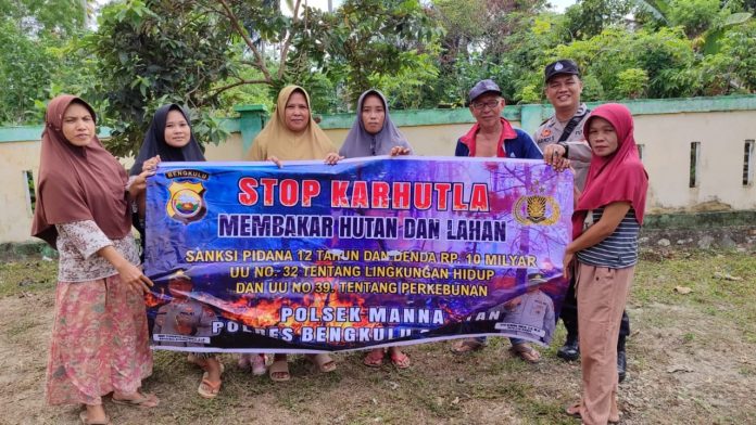 Coverpublik.com,Manna – Untuk mencegah dan mengantisifasi terjadinya rawan kebakaran hutan atau Karhutla, Bhabinkamtibmas Polsek Manna Polres Bengkulu Selatan Aipda Handi Septanto, S.H. melakukan giat sosialisasi larangan pembukaan lahan dengan cara membakar yang dilaksanakan di Desa Jeranglah Rendah Kecamatan Manna Kabupaten Bengkulu Selatan. Selasa (26/09/2023) sekira pukul 09.00 Wib sd 11.00 Wib.