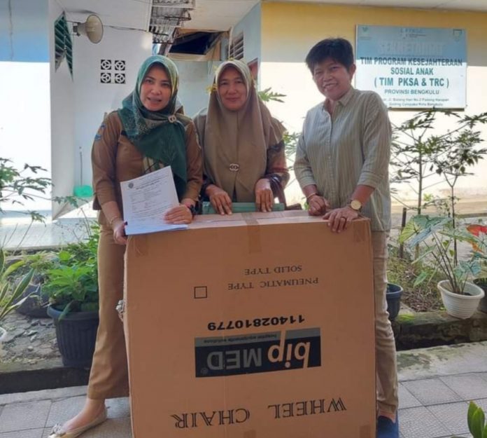 Selasa (19/7/2022), Gubernur Bengkulu Dr drh H Rohidin Mersyah, MMA melalui Dinas Sosial (Dinsos) Provinsi Bengkulu menyalurkan bantuan kursi roda kepada nenek Wasia (74) yang menderita stroke.