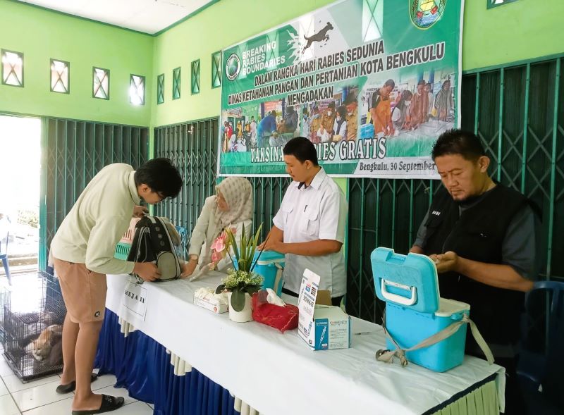 CoverPublik.com – Kegiatan vaksinasi rabies gratis yang digelar Dinas Ketahanan Pangan dan Pertanian Kota Bengkulu, dibanjiri oleh masyarakat yang berduyun-duyun datang membawa hewan peliharaannya.