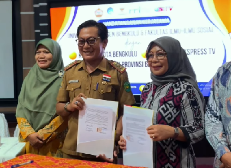 Bengkulu, CoverPublik.com – Kepala Dinas Komunikasi dan Informatika (Kominfo) Kota Bengkulu, Gita Gama, didampingi oleh Sekretaris Diskominfo Afri Candriani, Kepala Bidang Informasi dan Komunikasi Publik (IKP) Yoki Hardiyatno, serta Kepala Bidang Hubungan Masyarakat dan Teknologi Informasi (HMTI) Ariani Ningrum, menandatangani Memorandum of Understanding (MoU) dengan Universitas Dehasen Bengkulu. Penandatanganan ini berlangsung di Ruang Telekonferensi Universitas Dehasen.