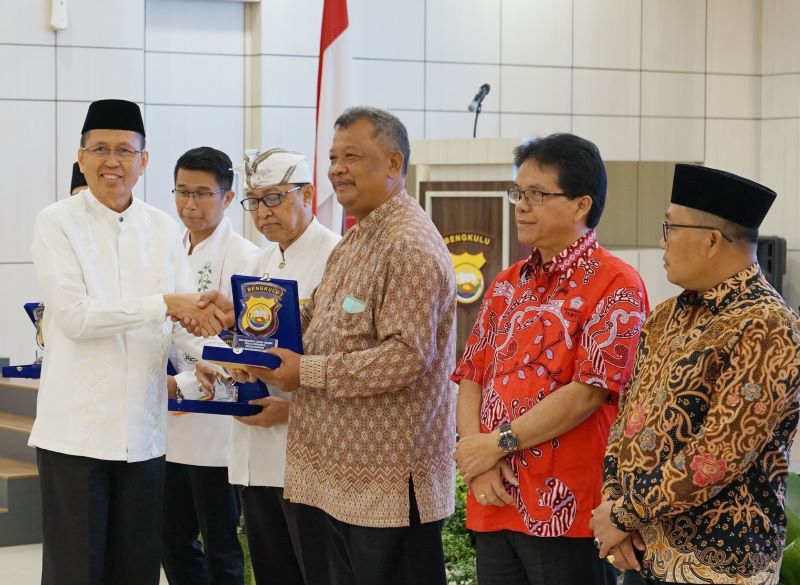 CoverPublik.com  – Sekretaris Daerah (Sekda) Provinsi Bengkulu Isnan Fajri hadir mendampingi Kapolda Bengkulu Irjen Pol. Armed Wijaya beserta jajaran, mengikuti doa bersama lintas agama dalam rangka menyambut Hari Bhayangkara ke-78, bertempat di aula Rupatama Awaloedin Djamin, Lantai 3 Gedung Tribrata, Polda Bengkulu, Jumat malam (28/6/2024).