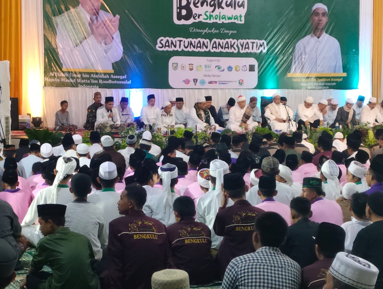 Coverpublik.com – Sabtu (6/8) malam, Dewan Pengurus Cabang (DPC) Rabithah Alawiyah Provinsi Bengkulu menyelenggarakan Tabligh Akbar dan Santunan Kepada Ratusan Anak Yatim di Masjid Raya Baitul Izzah, Kota Bengkulu bersama Majelis Maulid Watta’lim Roudhotussalaf Ahlussunnah Waljamaah- Indonesia Cabang Bengkulu.