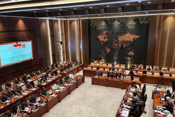 Jakarta, CoverPublik.com – Dewan Perwakilan Rakyat (DPR) RI kembali melaksanakan rapat kerja di Kompleks Parlemen, Senayan, Jakarta, Senin (1/9), usai gelombang unjuk rasa yang berlangsung sejak 25 Agustus lalu. Rapat dipimpin Ketua Komisi I DPR RI, Utut Adianto, dan dihadiri pimpinan tiga matra TNI yakni Kepala Staf Angkatan Darat (KSAD) Jenderal TNI Maruli Simanjuntak, Kepala Staf TNI Angkatan Laut (KSAL) Laksamana TNI Muhammad Ali, serta Kepala Staf TNI Angkatan Udara (KSAU) Marsekal TNI M Tonny Harjono.