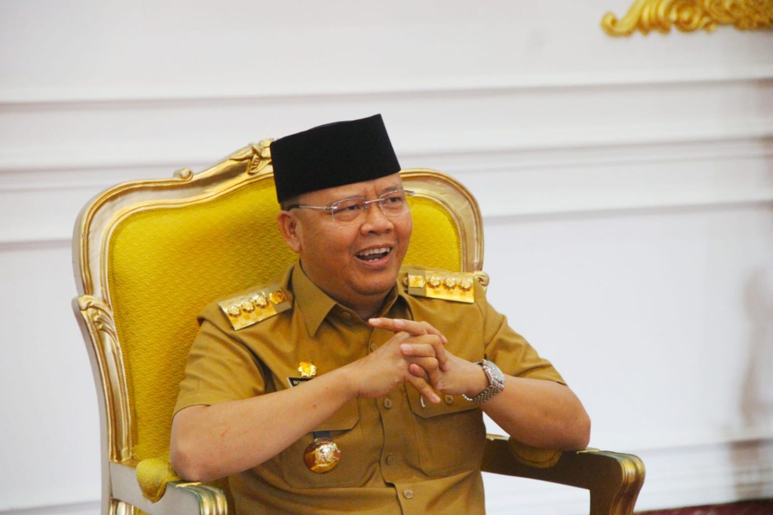 Gubernur Bengkulu H. Rohidin Mersyah saat diwawancarai awak media di Gedung Balai Raya Semarak Bengkulu. Senin (16/10/2023). Dok: Yulisman