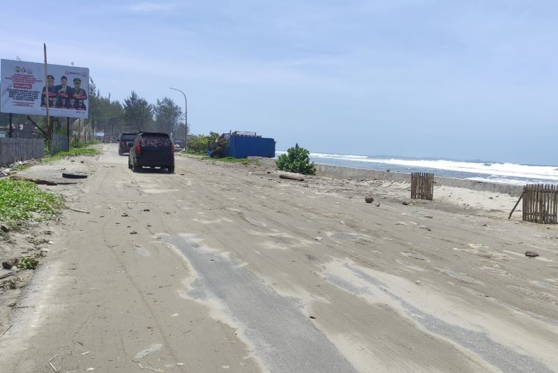 CoverPublik.com – Fenomena air laut pasang telah menyebabkan genangan di sepanjang jalan pantai Berkas Bengkulu beberapa hari ini.