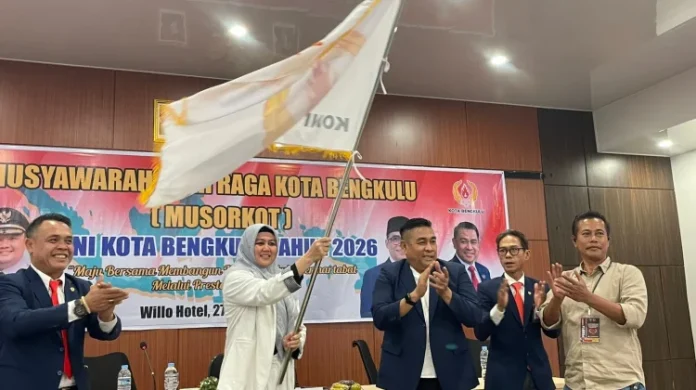 Bengkulu, CoverPublik.com – Fenti Wisnuwardani resmi terpilih sebagai Ketua Komite Olahraga Nasional Indonesia (KONI) Kota Bengkulu masa bakti 2026–2031 melalui Musyawarah Olahraga Kota (Musorkot) yang digelar di Kota Bengkulu, Senin (27/4).