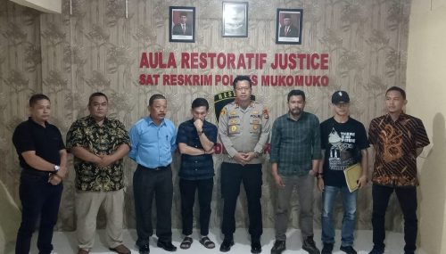 Mukomuko, Coverpublik.com – Mendukung hasil kesepakatan damai diantara kedua belah pihak yang tersangkut dugaan tindak pidana pencurian, Sat Reskrim Polres Mukomuko Polda Bengkulu tadi malam Jumat (07/10) melakukan penyelesaian perkara melalui jalur Restoratif Justice.