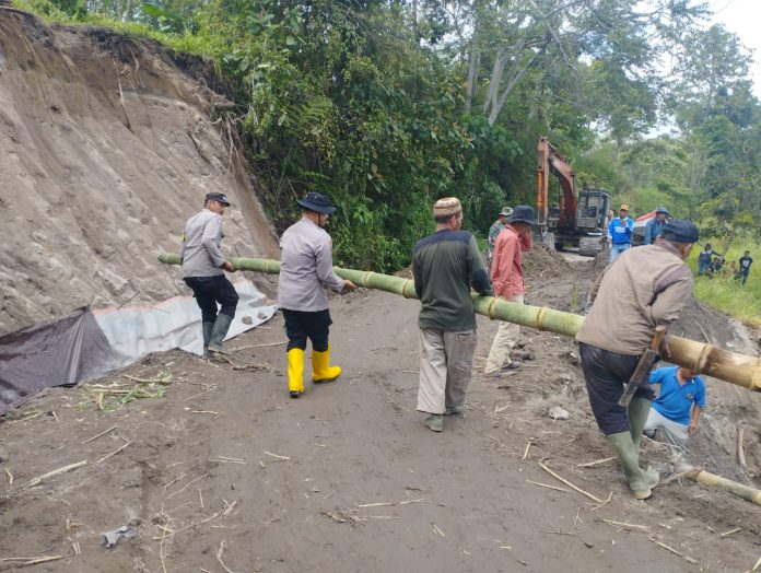 Aceh Tengah, Coverpublik.com — Ancaman tanah longsor yang mengintai di sisi jalan Kampung Lukup Sabun Barat tidak memadamkan semangat warganya. Justru dari tanah yang rapuh itu, tumbuh solidaritas yang kokoh antara Polri dan masyarakat.