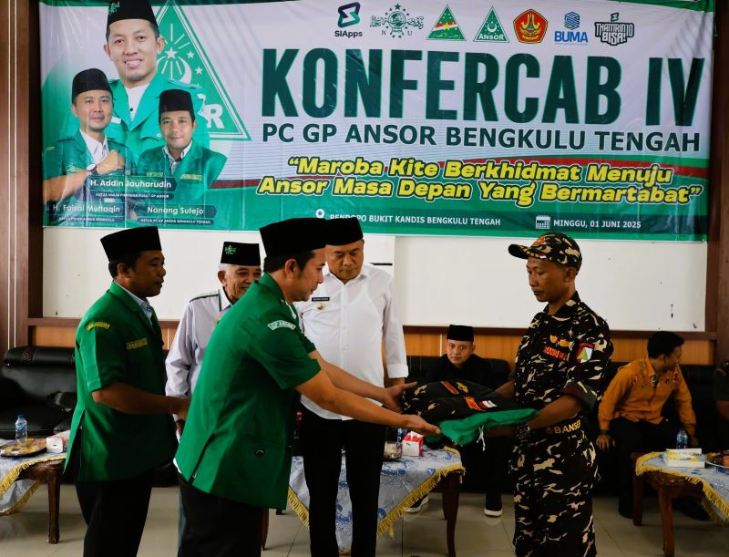 Sebagai bentuk dukungan, Bupati Rachmat resmi ditunjuk sebagai Pembina GP Ansor Bengkulu Tengah, ditandai dengan pemasangan jaket dan penandatanganan surat pernyataan.