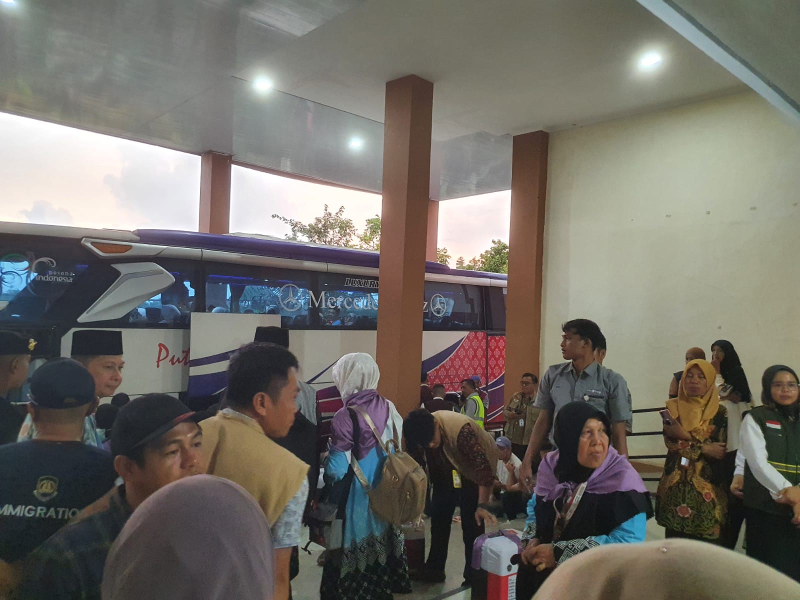 Selain jemaah, turut mendampingi tiga petugas kloter, yakni TPHI Azka Saidina Umar, tenaga medis Ruslian Sailana, serta TKHI Yeni Oktasari.