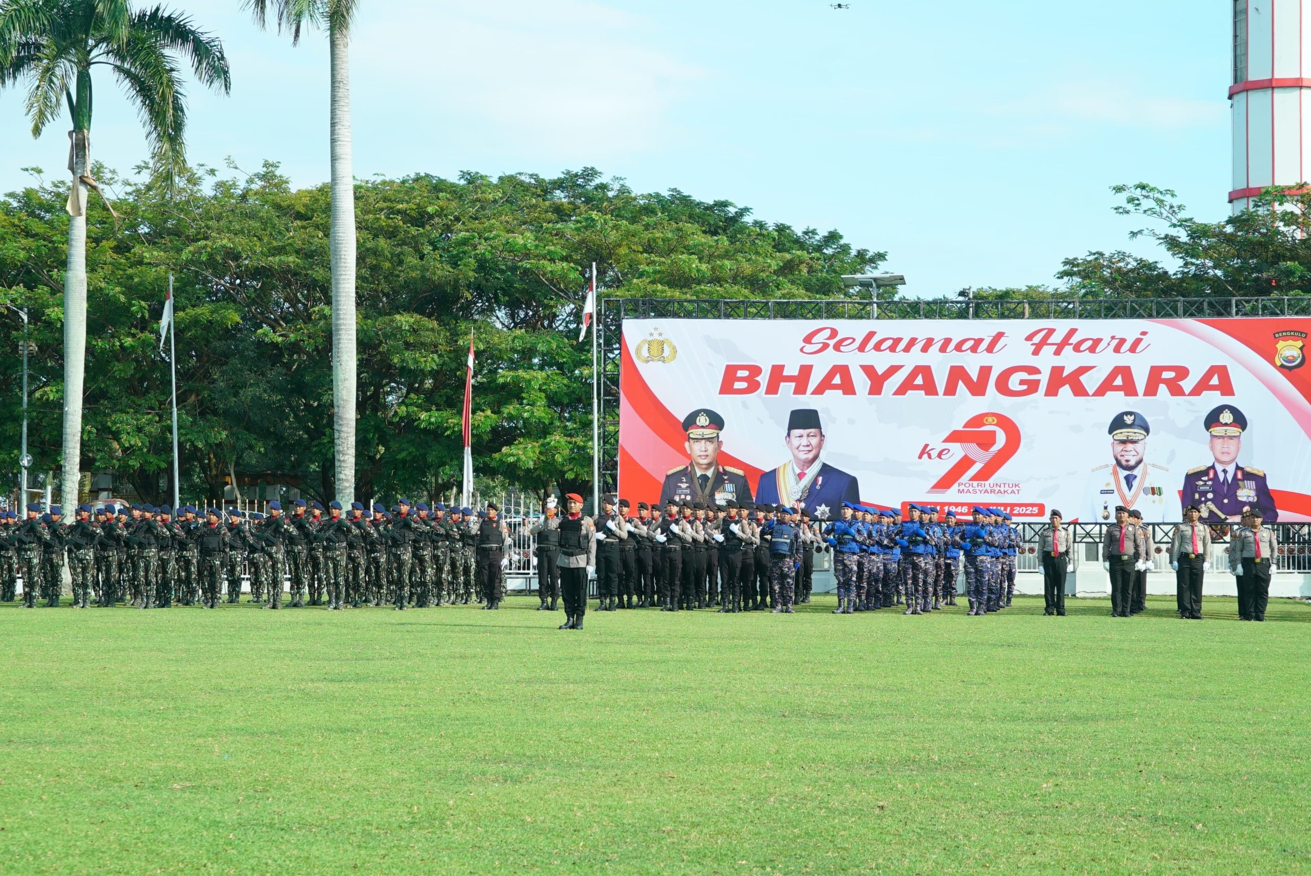 Sementara itu, Kapolda Bengkulu Irjen Pol. Mardiyono menegaskan bahwa momentum HUT Bhayangkara ke-79 adalah pengingat penting bagi Polri untuk terus hadir di tengah rakyat sebagai pelindung, pengayom, dan penggerak perubahan.