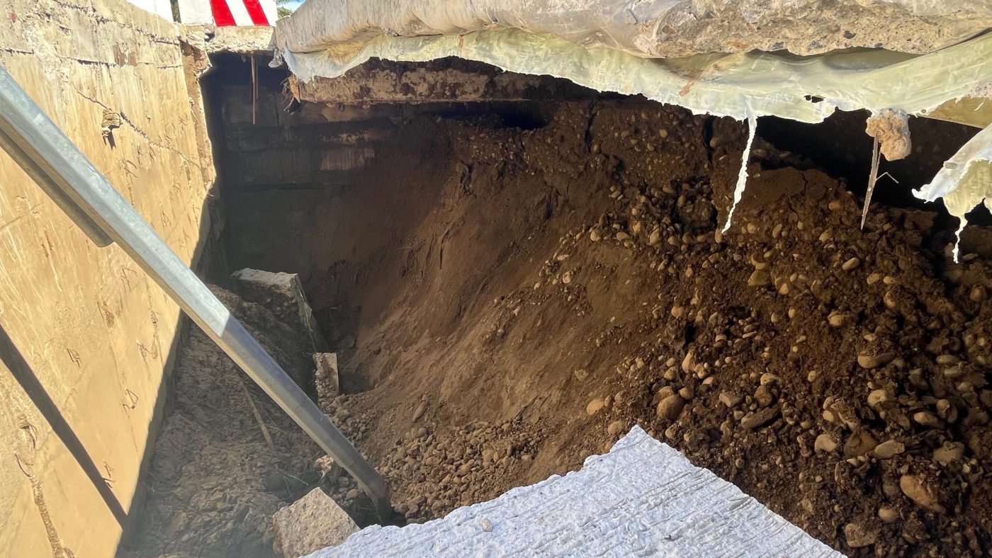 “Kalau dilihat, materialnya tidak bagus, tidak ada besi dan hanya ditimbun pasir, bukan material padat seperti yang seharusnya,” kata Agus.