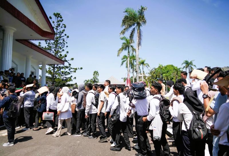 Bengkulu, CoverPublik.com – Job Fair Loker Merah Putih yang diselenggarakan Pemerintah Provinsi Bengkulu di Balai Raya Semarak, Kamis siang (10/4), diserbu para pencari kerja. Meskipun pendaftaran baru dibuka pukul 10.00 WIB, antrean sudah mulai mengular sejak pagi.