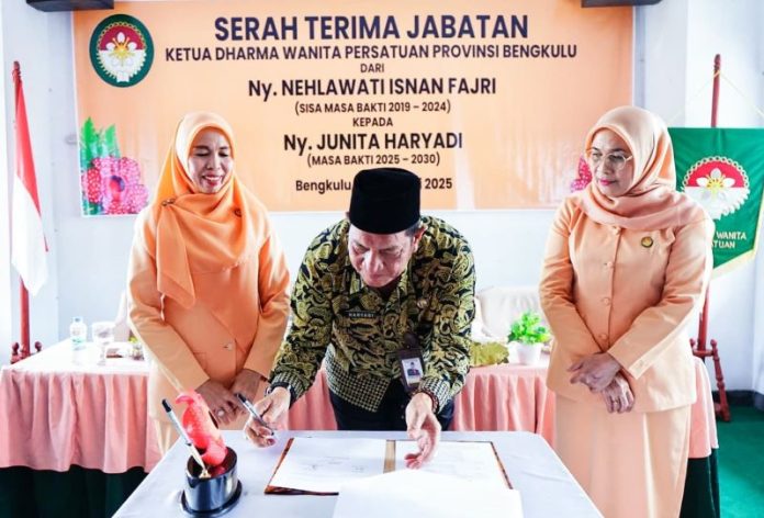 Ketua Dharma Wanita Persatuan (DWP) Provinsi Bengkulu dari Nehlawati Isnan Fajri kepada Junita Haryadi