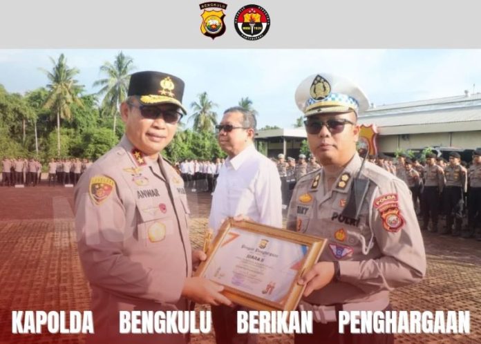 Kota Bengkulu, CoverPublik.com – Kepala Kepolisian Daerah (Kapolda) Bengkulu, Irjen Pol. Anwar, S.I.K., M.Si., memberikan penghargaan kepada para pemenang Lomba Kebersihan Markas Komando (Mako) dan Kesenian Dol di lingkungan Polda Bengkulu. Acara ini berlangsung pada Senin (6/1/2025) di Lapangan Apel Anton Soejarwo.