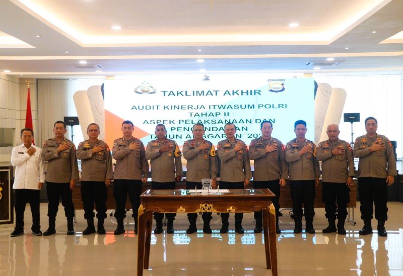 Hadir dalam taklimat akhir tersebut team audit Itwasum Polri yang diketuai oleh Brigjen Pol Heru Koco, S.Ik., dengan didampingi Kombes Pol M.Eddy Hermanto, Kombes Pol Herry Nixon, Kombes Pol Mansjur, Kombes Pol Arif Budi Winova, Kombes Pol Gunawan Eko Susilo, Kombes Pol Leonardo Panji Wahyudi.