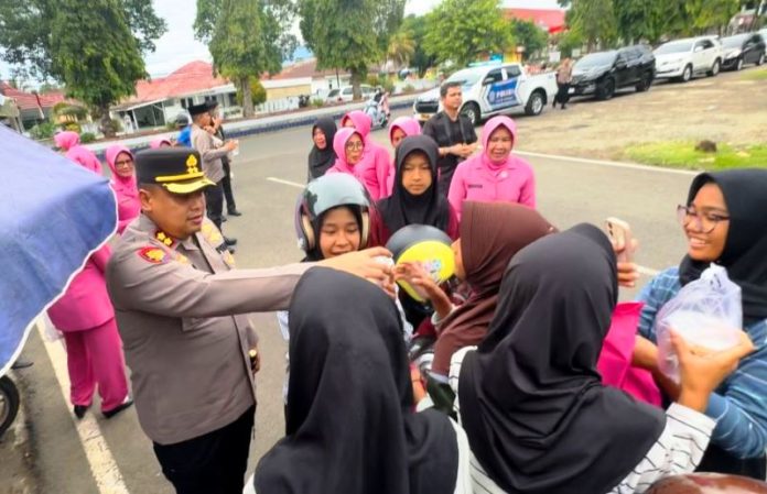 Bengkulu Utara, CoverPublik.com – Kapolres Bengkulu Utara, AKBP Eko Munarianto, S.I.K., bersama Ketua Bhayangkari Cabang Bengkulu Utara, Ny. Dhini Eko Munarianto, serta Pejabat Utama (PJU) Polres Bengkulu Utara melaksanakan kegiatan berbagi takjil di Alun-Alun Kota Arga Makmur. Kegiatan ini merupakan bagian dari program kepedulian sosial dalam rangka menyambut bulan suci Ramadan.