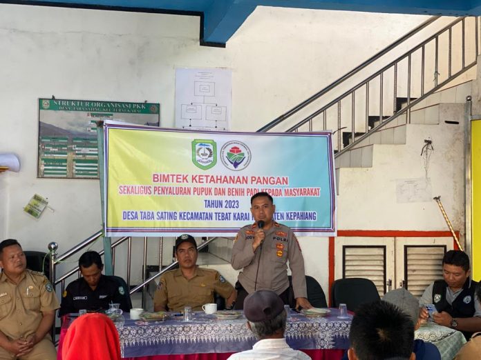 Coverpublik.com,Kepahiang – Kapolsek Tebat Karai dan bhabinkamtibmas menghadiri kegiatan Ketahanan Pangan penyaluran pupuk dan benih padi tahun anggaran 2023 secara simbolis kepada masyarakat Desa Taba Sating Kecamatan Tebat Karai Kabupaten Kepahiang. Senin (04/9/2023).