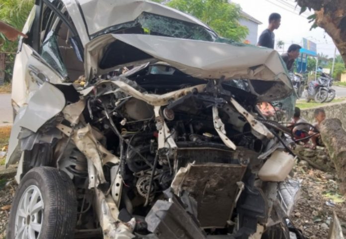 Kaur, Coverpublik.com – Mobil Toyota Avanza milik Kades Gedung Sako II Kecamatan Kaur Selatan Kabupaten Kaur, Merda Suhendra menabrak Pohon Mangga di Desa Beriang Tinggi Kecamatan Tanjung Kemuning.