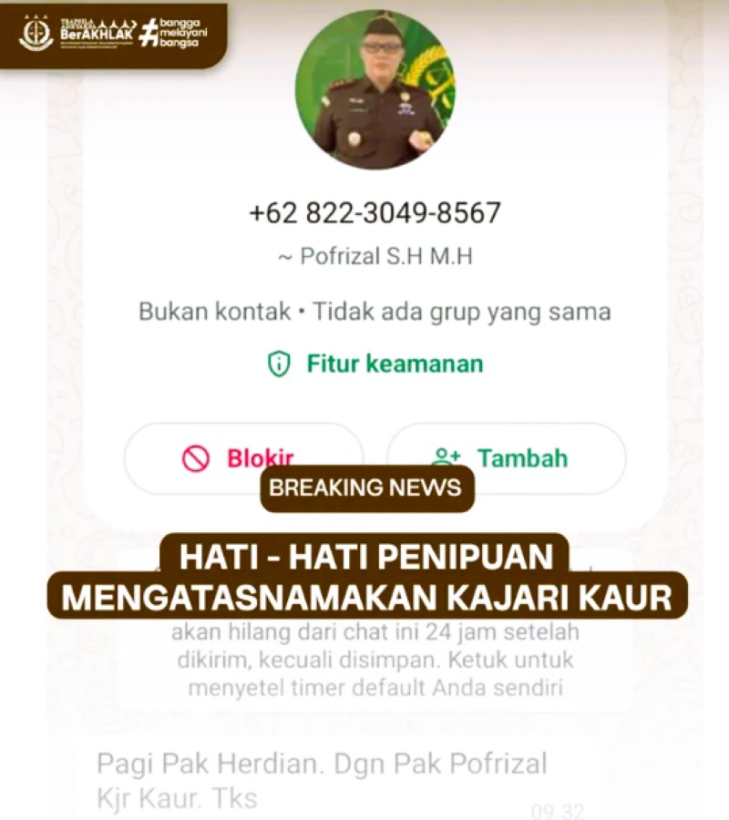 Peringatan ini disampaikan Kejari Kaur sebagai bentuk antisipasi dan perlindungan kepada masyarakat agar tidak menjadi korban kejahatan siber. Oknum-oknum yang tidak bertanggung jawab memanfaatkan nama dan jabatan Kepala Kejari untuk meminta uang, menjanjikan pengurusan perkara, atau melakukan penipuan lainnya.