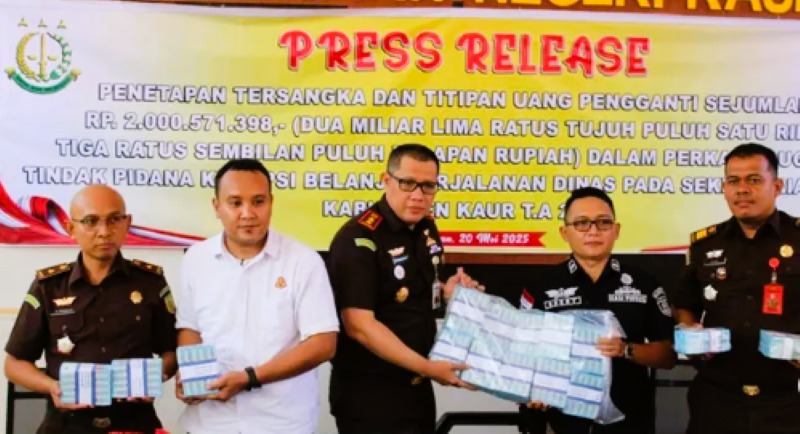 Kaur, CoverPublik.com – Kejaksaan Negeri (Kejari) Kaur resmi menetapkan empat tersangka dalam perkara dugaan tindak pidana korupsi terkait belanja perjalanan dinas di Sekretariat DPRD Kabupaten Kaur Tahun Anggaran 2023. Penetapan ini disampaikan langsung melalui konferensi pers oleh Kepala Kejari Kaur, Pofrizal, S.H., M.H. pada Rabu (21/5/2025).