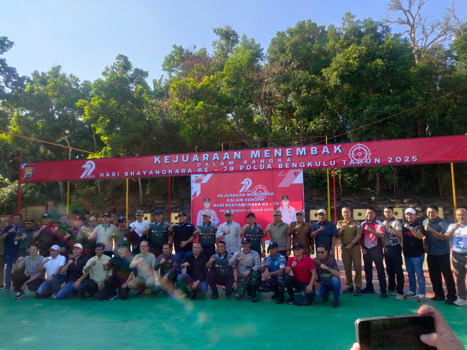 Bengkulu, CoverPublik.com — Peringatan Hari Bhayangkara ke-79 tahun 2025 diwarnai dengan gelaran Kejuaraan Menembak yang berlangsung meriah di Lapangan Mako Sat Brimobda Bengkulu, Selasa (22/7). Kegiatan ini diikuti 257 peserta dari berbagai unsur Forkopimda, TNI-Polri, pemerintah daerah, perbankan, hingga kalangan non-formal seperti influencer dan media.