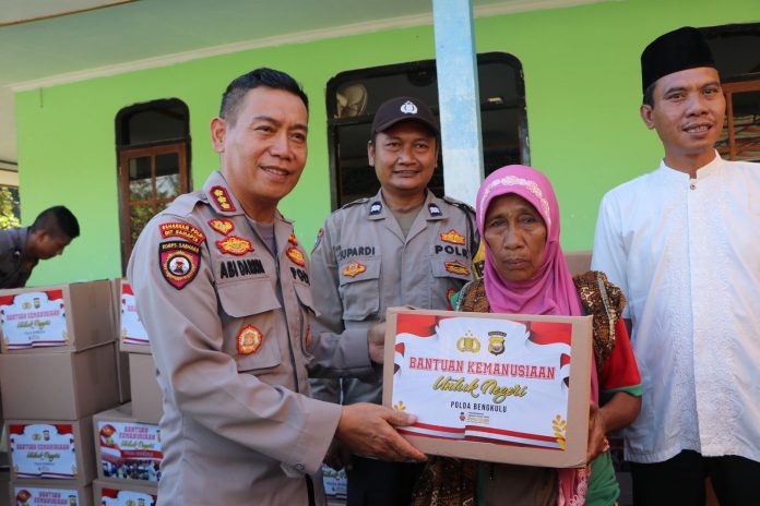 Bantuan Kemanusiaan untuk negeri yang di berikan oleh Polda Bengkulu kali ini di bagikan oleh Direktur Samapta Kombes Pol Abi Darin, S.Ik.,