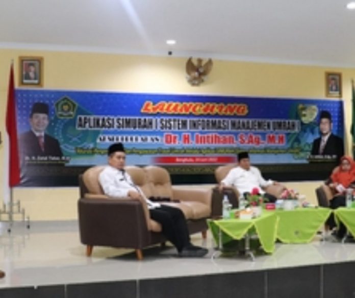 Coverpublik.com – Kementerian Agama (Kemenag) Provinsi Bengkulu meluncurkan aplikasi SIMURAH (Sistem Informasi Manajemen Umrah) dan SIPBAGAIS (Sistem Pelaporan Bulanan Guru Agama Islam), di Aula Kanwil Kemenag Bengkulu, Selasa (14/6/2022).