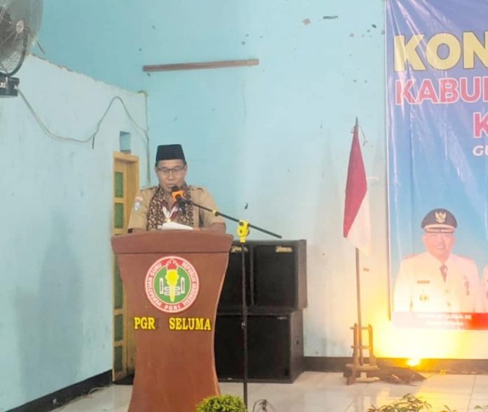 Coverpublik.com – Bupati Seluma diwakili Asisten Administrasi dan Umum Setda Kabupaten Seluma Riduan Sabrin, S.T., membuka Konferensi Kerja Kabupaten III Pengurus PGRI Kabupaten Seluma serta peletakan batu pertama pembangunan rumah singgah PGRI Kabupaten Seluma di gedung PGRI Kabupaten Seluma, Selasa (14/11/2023).
