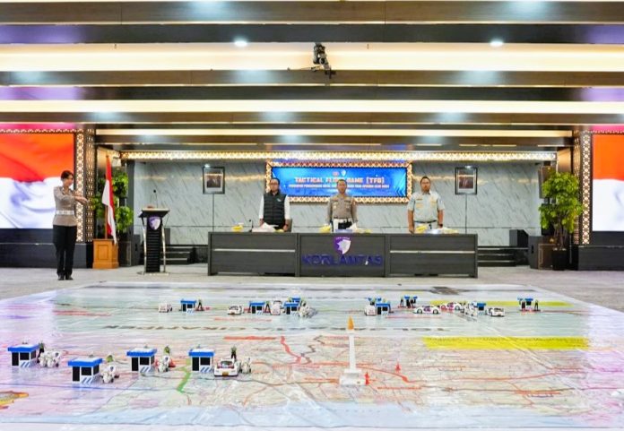 CoverPublik.com – Korps Lalu Lintas (Korlantas) Polri menggelar Tactical Floor Game (TFG) untuk memastikan kesiapan pelaksanaan Operasi Lilin 2024. Kegiatan ini dipimpin langsung oleh Kakorlantas Polri Irjen Pol. Aan Suhanan di Aula Madellu Korlantas.