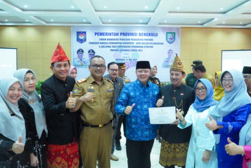 Selasa (21/5), Kota Bengkulu meraih penghargaan dari Gubernur Bengkulu sebagai Kabupaten/Kota Terbaik I Kategori Pelaksanaan Percepatan Penurunan Stunting dengan nilai 94,69 persen.