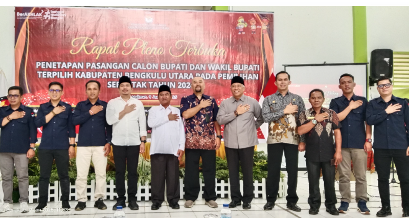 Bengkulu Utara, CoverPublik.com – Komisi Pemilihan Umum (KPU) Kabupaten Bengkulu Utara menggelar Rapat Pleno Terbuka Penetapan Pasangan Calon Terpilih dalam Pemilihan Bupati dan Wakil Bupati Bengkulu Utara Tahun 2024 pada Kamis (9/1/2025). Acara tersebut berlangsung di Aula SMKN 2 Arga Makmur dengan dihadiri berbagai pihak terkait.