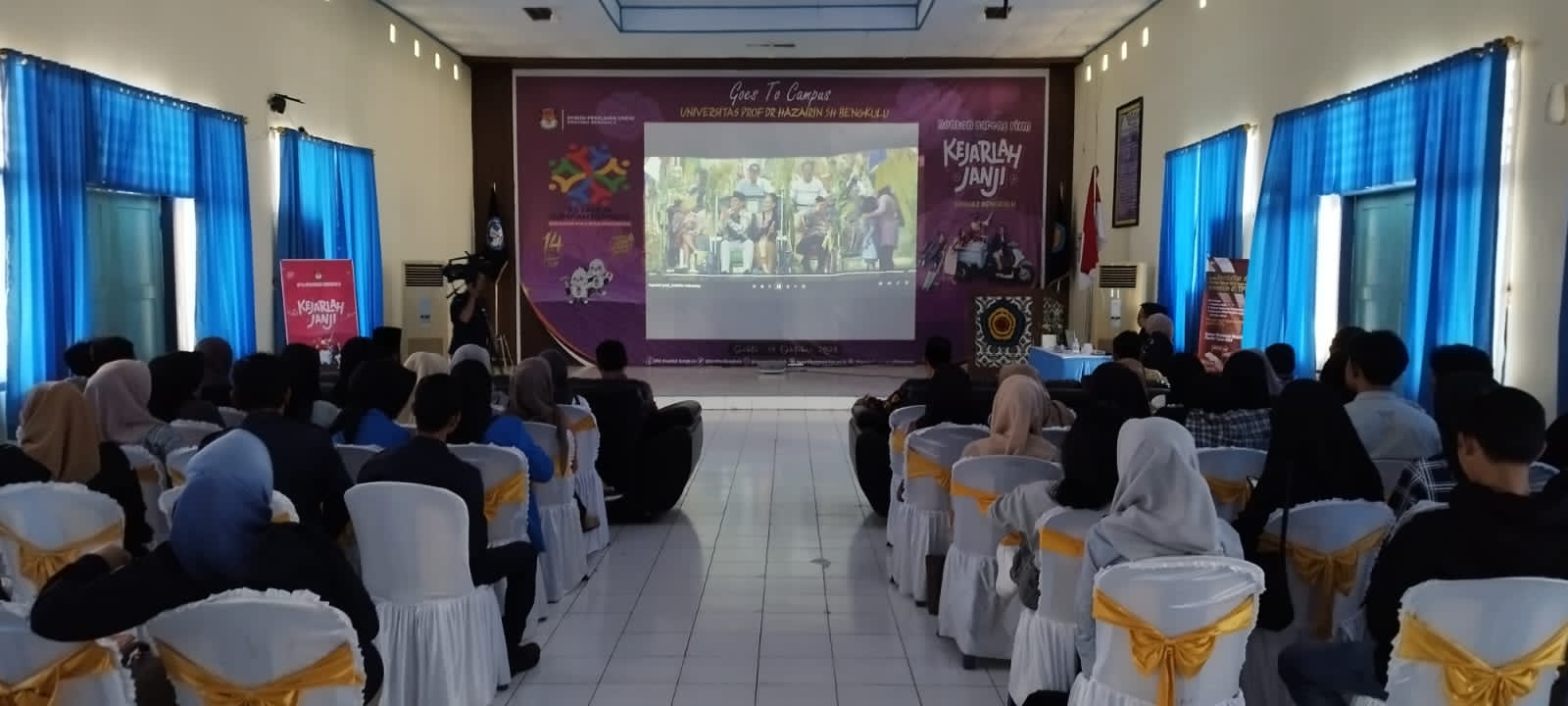 Coverpublik.com,Bengkulu – Komisi Pemilihan Umum (KPU) Provinsi Bengkulu melaksanakan goes to Campus jelang Pemilihan Umum (Pemilu) 2024 mendatang. Salah satunya di Kampus Poltekes Kemenkes Bengkulu dengan tema “Kejarlah Janji”. Sabtu (28/10/2023).