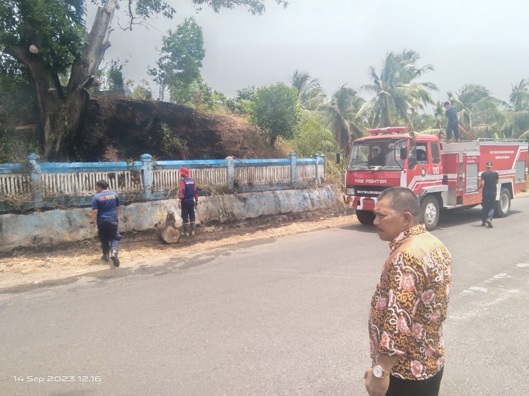 Coverpublik.com,Bengkulu – Terbakarnya lahan di area kuburan Tapak Jeddah membuat personil Pemadam Kebakaran (Damkar) Kota Bengkulu repot memadamkan api. Hal itu terlihat ketika personil Damkar memadamkan api lahan terbakar dipimpin oleh Kepala Dinas Damkar Kota Bengkulu Yuliansyah di Tapak Jeddah dengan menggunakan Damkar tersebut.