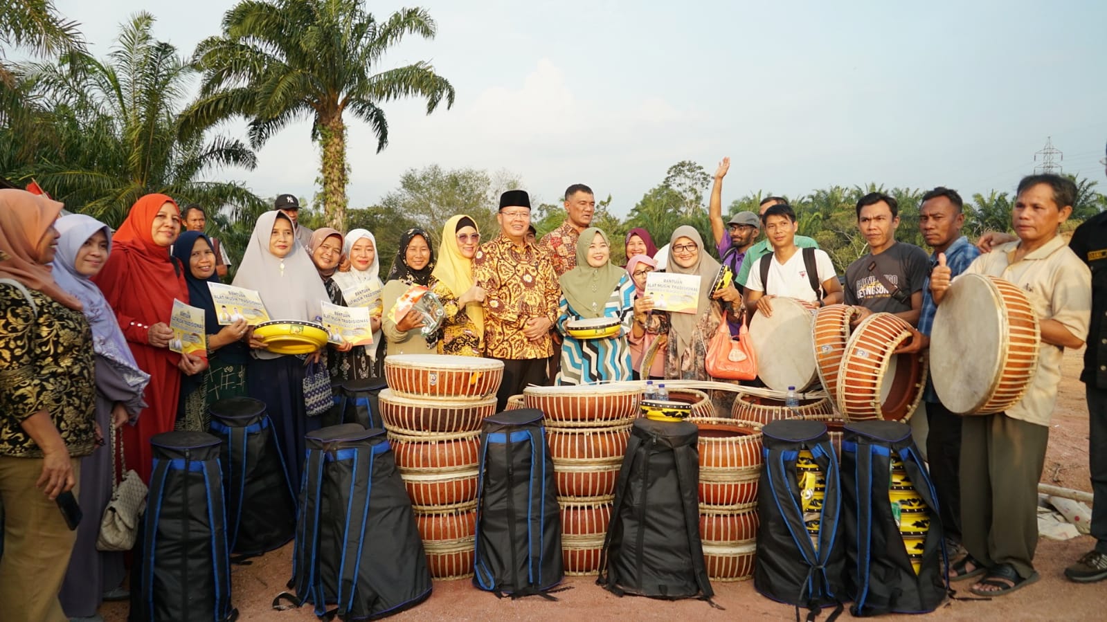 Selain Alsintan, turut diserahkan bantuan alat kesenian berupa 15 Set Rabbana dan 30 set Redap.