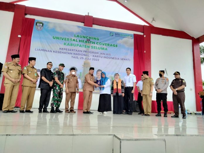 Coverpublik.com – Pemkab Seluma melalui Dinas Kesehatan (Dinkes) bekerjasama dengan Jaringan Media Siber Indonesia (JMSI) Seluma, menggelar kegiatan launching Universal Health Coverage (UHC) BPJS Kesehatan Tahun 2022 di Taman Wisata Kota, Senin (25/07/2022).