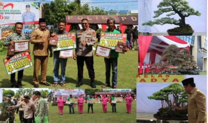 Ratusan tanaman bonsai tergelar di halaman depan Mapolda Bengkulu. Para pecinta bonsai ini memamerkan bonsai andalannya pada Kontes dan Pameran Bonsai dalam rangka “Hari Bhayangkara ke-76 Tahun 2022.