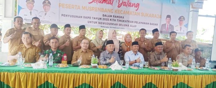 Camat Sukaraja dalam laporannya menyampaikan bahwa Musrenbang ini merupakan hasil dari Musrenbang tingkat desa dan kelurahan yang telah dilaksanakan di seluruh Kecamatan Sukaraja. “Saya bersyukur bahwa Musrenbang di tingkat desa dan kelurahan telah berhasil kita laksanakan,” ujarnya.